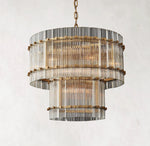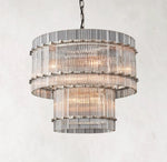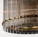 - Crafted of handmade fluted glass panels on a steel frame